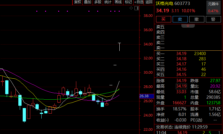 沃格光电开盘涨停,连续第3日封板;英联股份直线拉升,仅约7分钟就封死涨停;万顺新材、元琛科技等也直线涨停或涨超10%。